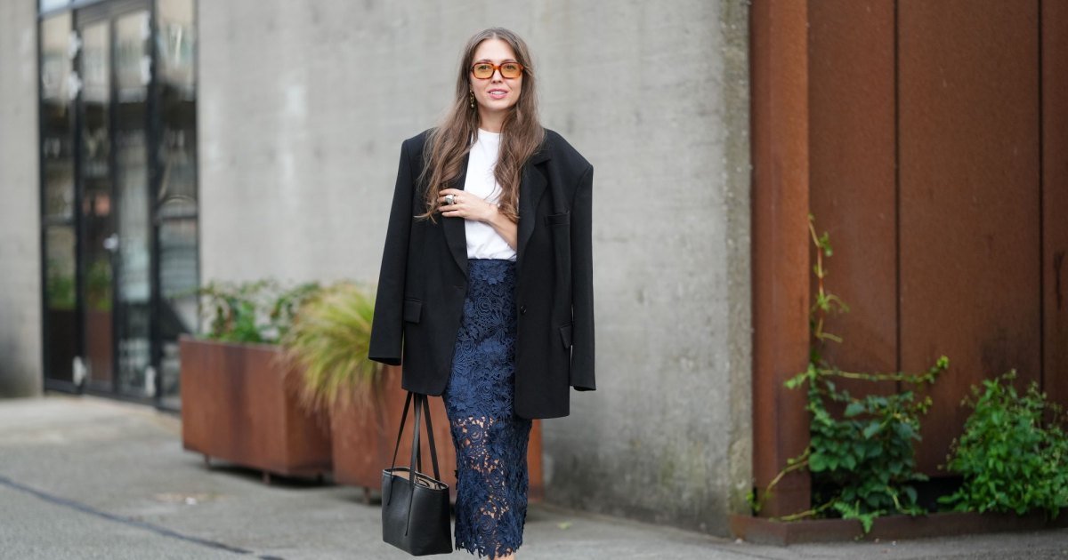 14. Ella habla en serio: Una falda lápiz es una necesidad de oficina y esta opción ampliable Es la longitud ideal para cualquier persona de baja estatura.