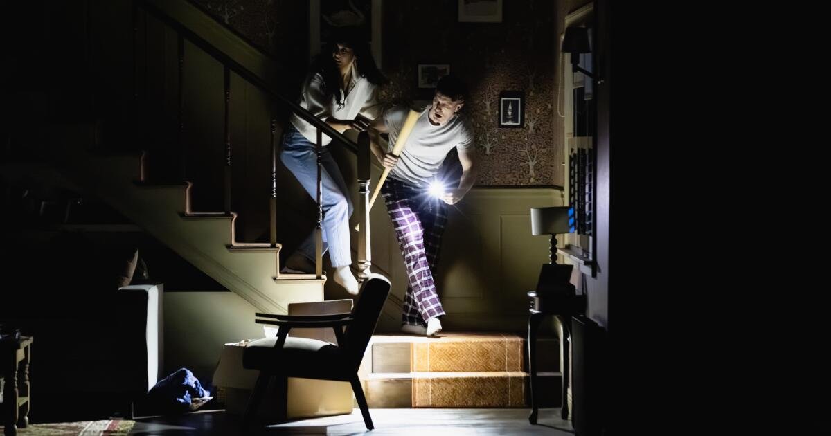 El conjunto resultante es, en muchos sentidos, la pieza de resistencia de la producción. Se trata de una casa de dos plantas cuya fachada ha sido recortada para que el público pueda ver todas las estancias a la vez. La clave de este terror inquietante reside en lo que permanece invisible y en lo que los espectadores creen ver, por ejemplo, en un dormitorio oscuro en el piso de arriba mientras los actores se ocupan de sus asuntos en la cocina de abajo.