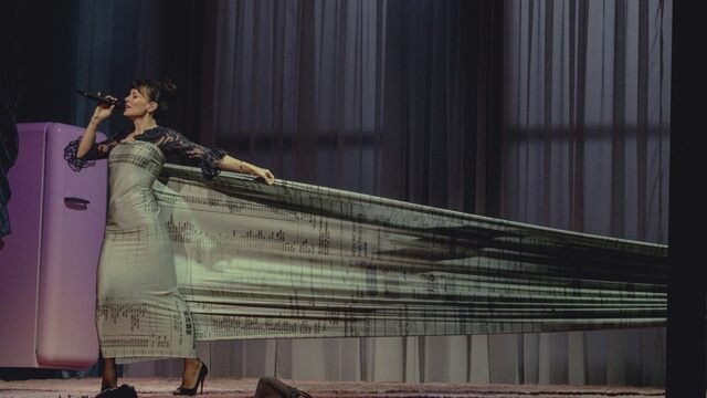 El impulso continuó con “4chan Stan”, durante el cual Allen se envolvió en un largo trozo de tela blanca que supuestamente contenía recibos de artículos que su ex compró para otras mujeres, así como capturas de pantalla de mensajes de texto. Otro trozo de tela que parecía contener un mensaje escrito a mano, ¿tal vez una carta? – luego se enroscó alrededor de su cabeza, casi ahogándose con las supuestas mentiras de su pareja. Fue a la vez una declaración poderosa y un derribo mezquino, que proporcionó la cantidad adecuada de drama y al mismo tiempo impidió que la audiencia supiera exactamente lo que se estaba escribiendo.