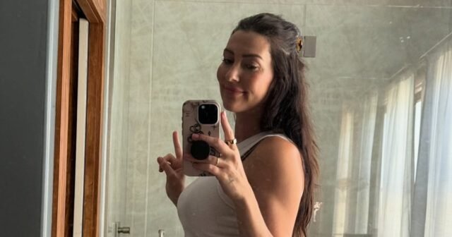 Mientras comparte una serie de Instagram En instantáneas de Halloween y más allá, Kufrin, de 35 años, subió una selfie en el espejo mostrando su estómago visible. En la imagen, Kufrin sonreía a la cámara mientras sostenía un signo de la paz.