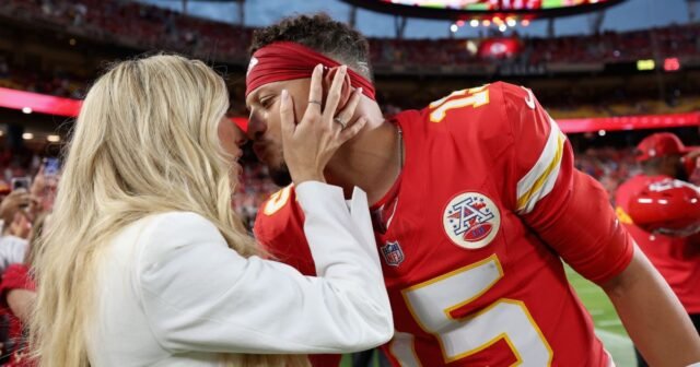 Brittany Mahomes luce el glamour del día del juego y besa a Patrick Mahomes