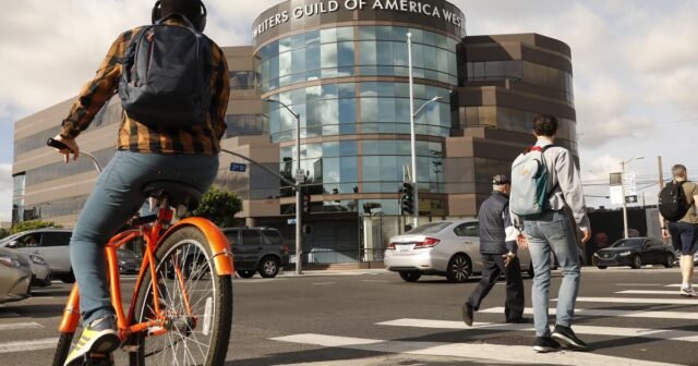El sindicato de personal WGA continúa protestando frente a sus oficinas de Fairfax. El martes, decenas de escritores se unieron a ellos para el “Día de Solidaridad de la WGA”.