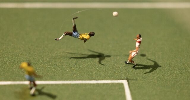 Hoy, el nativo de Nueva Orleans, de 61 años, estrena su último proyecto en el Museo de Arte del Condado de Los Ángeles: “El fútbol es vida..” Representa algunas de las obras de teatro y momentos políticos más emblemáticos de los 95 años de historia del La Copa Mundial de la FIFA en Los Ángeles este veranocon envoltorios de chicle “humildes”.