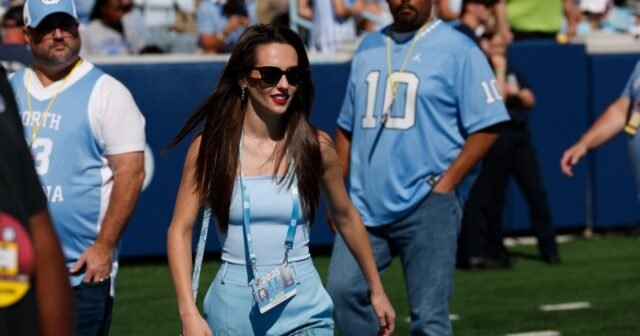 Jordon Hudson No solo se presentó como una novia secundaria, sino que llamó a los juegos de moda para el día del partido de la Universidad del Norte de Carolina en el Kenan Memorial Stadium.