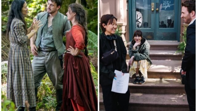 (En la foto: Chloè Zhao dirige el set de “Hamnet” y Céline Song dirige el set de “Materialists”.)