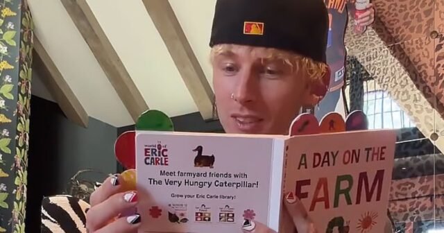 “¿Qué dice una gallina?” » MGK luego preguntó antes de que Saga amablemente imitara el sonido, “bawk bawk”. Él le dijo: “Buen trabajo, princesa”.