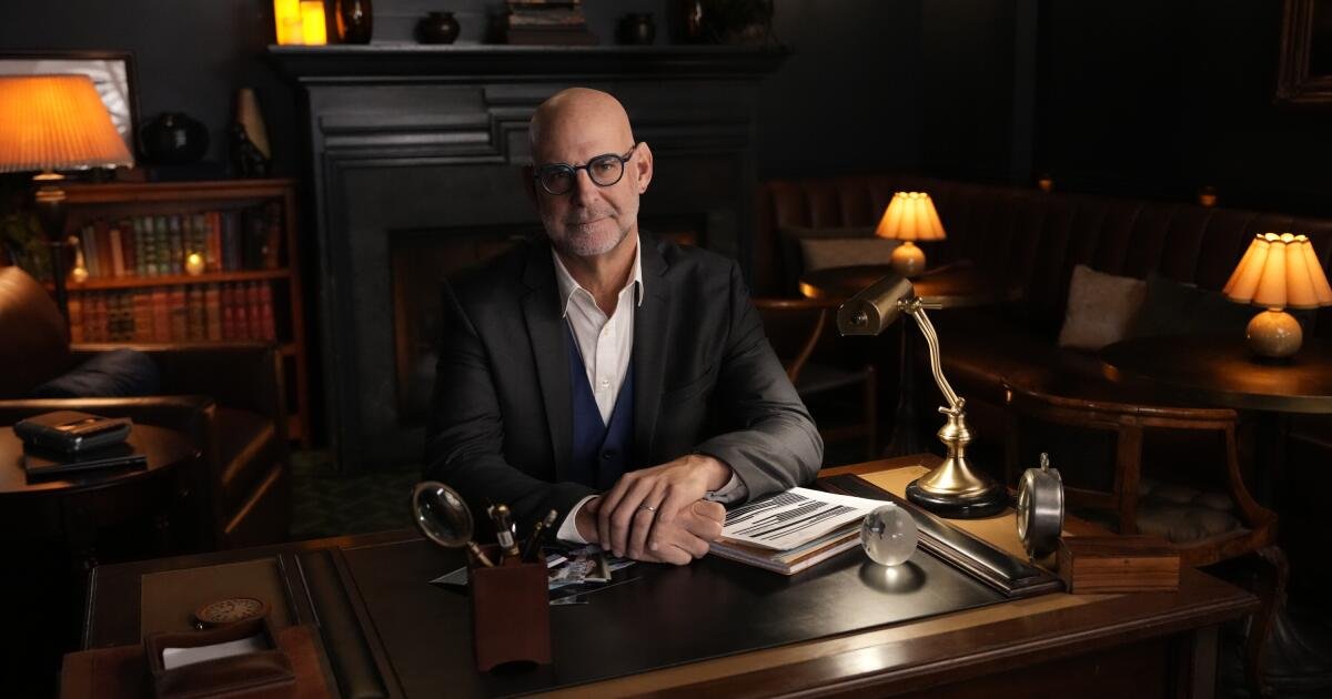 Lo mas de mi gusto es “libresco,» una importación británica episódica que comienza el domingo en PBS. Creada y protagonizada por Mark Gatiss, un reconocido escritor y actor, con raíces en la comedia, la ciencia ficción y el misterio británicos, co-creó con Steven Moffat “Sherlock”, en la que interpretó a Mycroft Holmes, y es autor de nueve guiones de “Doctor Who”. Se trata de una especie de serie británica tradicional, una pieza de posguerra bien vestida con un detective excéntrico en el centro. Gatiss interpreta a Gabriel Book, un librero anticuario apasionado por resolver crímenes, que se une a las filas de detectives consultores y aficionados tan queridos por la ficción policial británica: Marple, Wimsey, Holmes, Paul Temple, Father Brown, et al.
