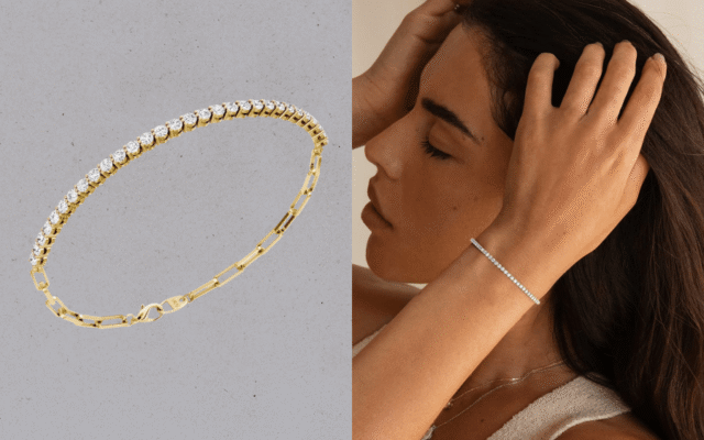 Hoy, justo a tiempo para el día de San Valentín, la marca californiana presenta un “Pulsera de tenis con clip,» que ofrece un toque contemporáneo al clásico anillo de diamantes.