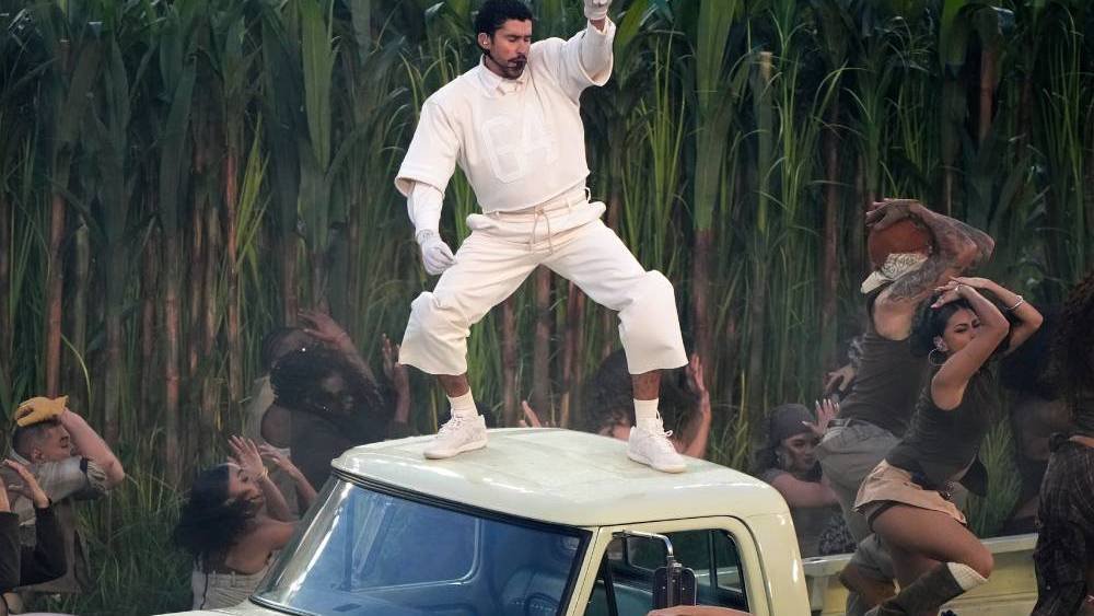 Dejando a un lado los detalles de vestimenta, el espectáculo de medio tiempo de Bad Bunny fue una celebración de América Latina y particularmente de su natal Puerto Rico, mientras el artista cantaba y bailaba a través de un elaborado set que incluía un falso campo de caña de azúcar y una vecindad puertorriqueña, completa con una peluquería, una licorería y la icónica “casita”, bajo la cual bailaron Karol G, Cardi B Young, Miko Jessica Alba y Pedro Pascal. En el centro de la actuación, Lady Gaga cantó una versión con tintes de salsa de su éxito de 2024 con Bruno Mars, “Die With a Smile”, mientras que, en otro guiño a Puerto Rico, Bad Bunny dio la bienvenida al escenario al también cantante Ricky Martin para una breve versión de “lo que le pasó a Hawái”, del último álbum de Bad Bunny ganador de un Grammy, “Debí tirar más fotos”.