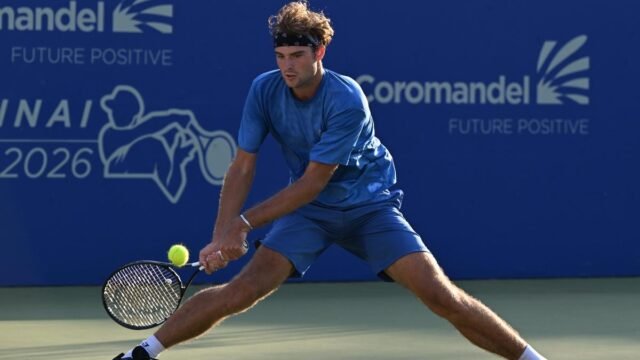 Sumit Nagal en acción en el Chennai Open ATP Challenger en Chennai el jueves 12 de febrero de 2026. | Crédito de la foto: R. RAGU