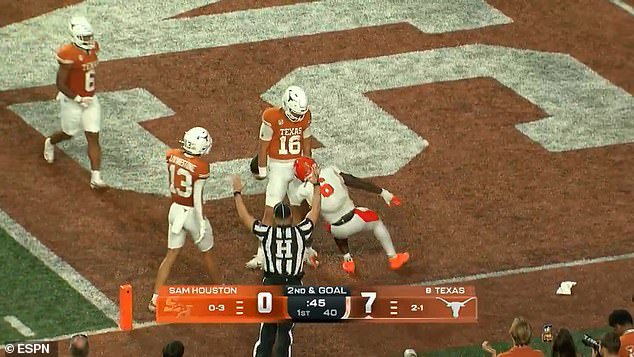 El cuarto del Arch Manning de Texas lanzó tres afectados y corrió para otros dos, mientras que los Longhorns de Octava fila pisotearon en Sam Houston, 55-0, en Austin, Austin. Pero a pesar de todas las fortalezas del estudiante en el segundo año, fue su celebración del desagradable área final lo que atrajo la mayor reacción de los fanáticos del fútbol universitario.