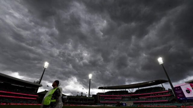 El juego se detuvo 15 minutos antes de la pausa para el té programada para el domingo frente a casi 50.000 fanáticos en el Sydney Cricket Ground debido a los protocolos de luz tenue, lluvia ligera y rayos.