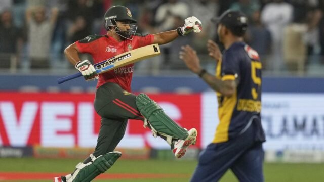 Después de marcar cincuenta ardor con el bate, fue nuevamente en Sri Lankais versátil Dasun Shanaka para invocar magia. Parte con solo cuatro puntos para defenderse en la final, Shanaka sacudió al Bangladesh dos veces en tres bolas, pero no fue suficiente.