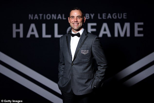 Smith (izquierda) ha trabajado en un puesto de medios en Channel Nine desde que se jubiló en 2020. La estrella del fútbol también trabajó como asistente del jefe de Queensland, Billy Slater.