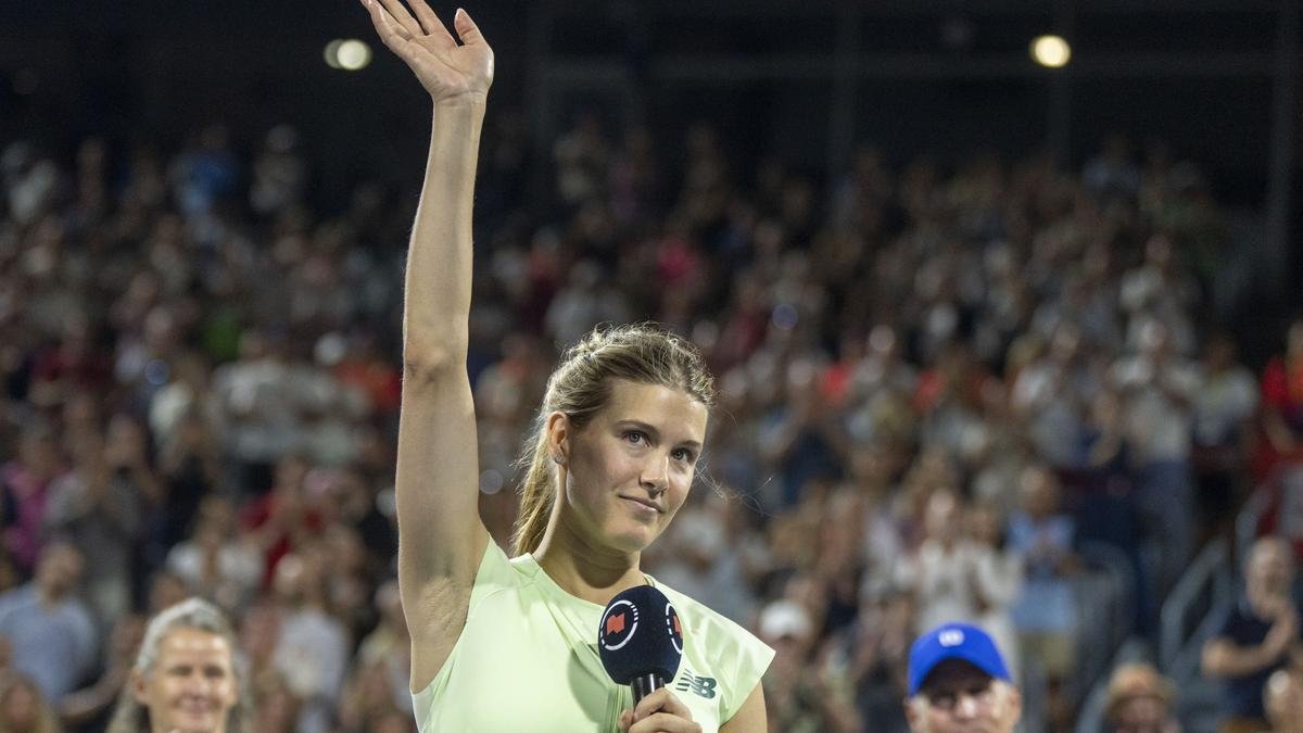 Eugenie Bouchard (Can) se dirige a la multitud durante su ceremonia de jubilación en el estadio IGA. | Crédito de la foto: Reuters