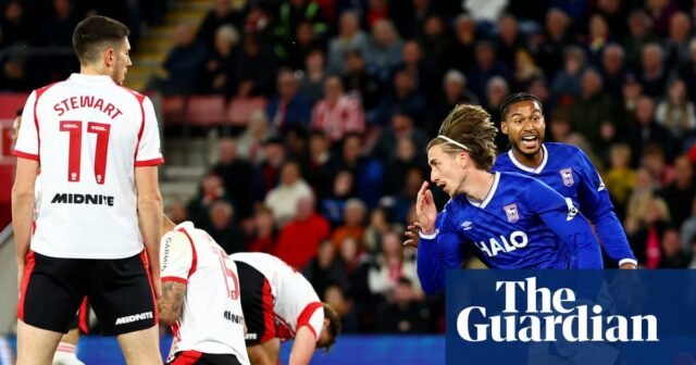 Ipswich, ten cuidado. Los cambios de McKenna fueron radicales, cinco cambios con respecto al empate del sábado contra West Brom, otro bloque en el camino de ascenso que permaneció dentro de los confines del Town pero que se había vuelto lleno de nervios. Sólo una victoria de cada cuatro había frenado la reintegración a la galaxia de la Premier League. Los aficionados locales replicaron el ruido que hicieron en Wembley, mientras que los de Suffolk fueron igual de ruidosos. Ipswich planteó la primera amenaza, con Jaden Philogene forzando una parada a corta distancia de Daniel Peretz desde el principio tras un rápido contraataque, mientras ambos equipos se lanzaban a una ecuación en la que un empate no servía de nada para ninguno de los equipos. Los desafíos fueron intensos y los poseedores de la posesión tuvieron poco tiempo para pensar, como es habitual en el mundo vertiginoso de un campeonato del que ambos clubes desean escapar.