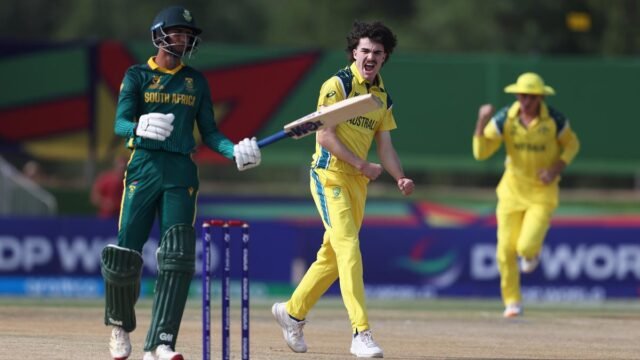 Australia consolidó su lugar en la cima del Grupo 1 con una victoria de seis terrenos sobre Sudáfrica, mientras que las Indias Occidentales vencieron a Irlanda para mantenerse en la contienda por un lugar en las semifinales de la etapa Super Six de la Copa Mundial Sub-19 ICC 2026 el domingo.
