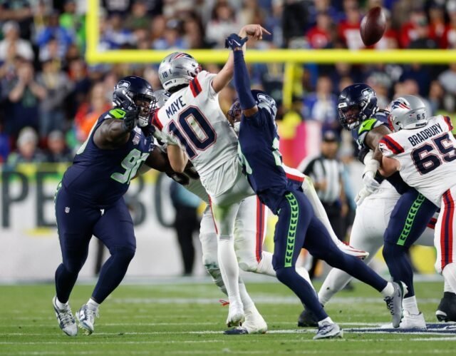 El mariscal de campo de segundo año de los Patriots, que lidiaba con dolor en el hombro durante el Super Bowl 60, recibió duros golpes de la defensa de Seattle mientras luchaba por completar pases a receptores abiertos.