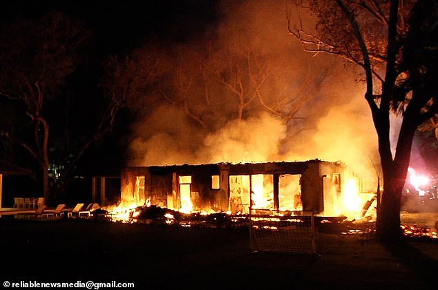 Las redes de noticias locales capturaron llamas elevándose por encima de las paredes exteriores de la propiedad, horas después de que se envió una llamada a los socorristas, mientras un espeso humo se elevaba hacia el cielo.
