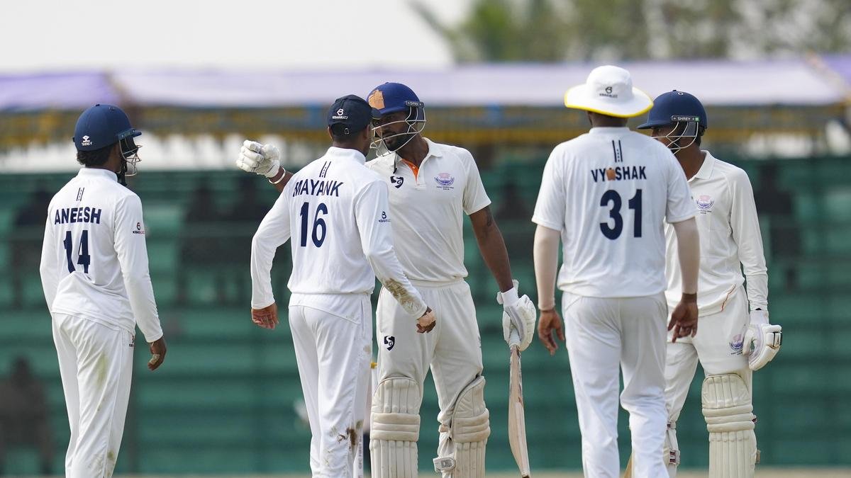Dogra avanzó hacia Aneesh y le dio un cabezazo mientras aún llevaba el casco, lo que provocó la intervención inmediata de los jugadores y los árbitros. El capitán de Karnataka, Mayank Agarwal, intervino para separar a los dos mientras los árbitros se movían rápidamente para calmar la situación.