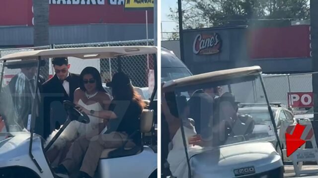 TMZ obtuvo un video que muestra el carro moviéndose rápidamente mientras el personal llevaba a Nick y Priyanka a la lona para respetarlos. Cuando el conductor hizo un giro brusco con una aceleración rápida, el vehículo giró con tanta fuerza que una de las ruedas se despegó del suelo y casi se volcó.