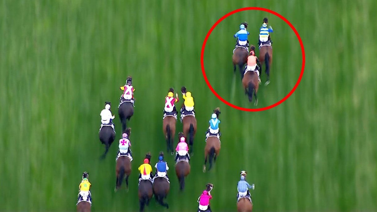“Definitivamente hubo una carrera allí”, dijo el experto en carreras David Gately, evaluando las imágenes de Nine mientras los comisionados trabajaban en las protestas.