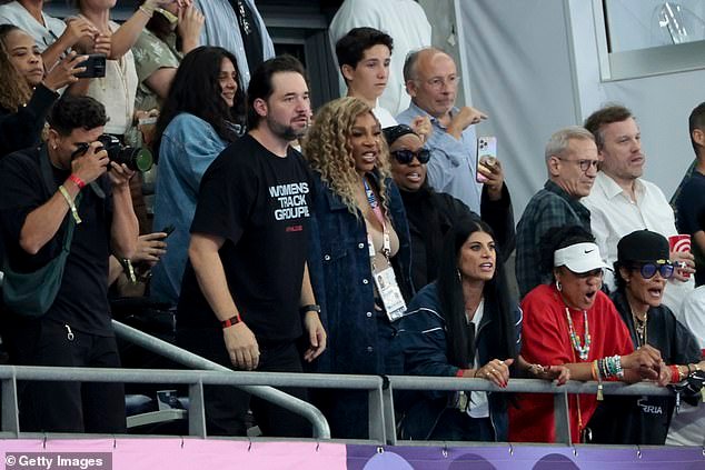 Alexis Ohanian y Serena Williams miran los 100 metros femeninos de los Juegos París 2024