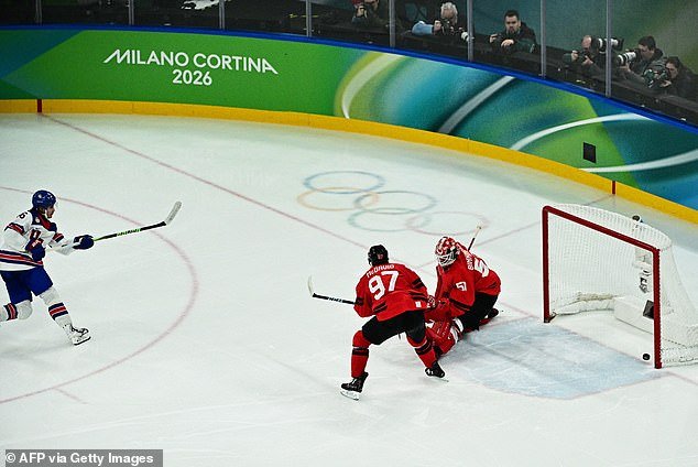 Hughes, que parecía estar perdiendo los dientes tras un incidente en el tercer cuarto, anotó 1:41 en tiempo extra para provocar el caos en Milán y en todo Estados Unidos. Fue la primera medalla de oro del país en hockey masculino desde el “Milagro sobre hielo” en 1980 y 46 años después de esa victoria contra la Unión Soviética.