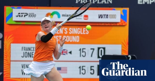 Poder practicar con una jugadora tan legendaria era un sueño en sí mismo, pero el jueves por la tarde, Jones ahora puede decir que también venció a una de las grandes leyendas del juego al cerrar una victoria por 7-5, 7-5 sobre la siete veces campeona de Grand Slam de 45 años en la primera ronda del Abierto de Miami. La victoria marca la primera victoria de Jones en un partido WTA 1000 de su carrera, poniendo fin a una racha de cuatro derrotas consecutivas.