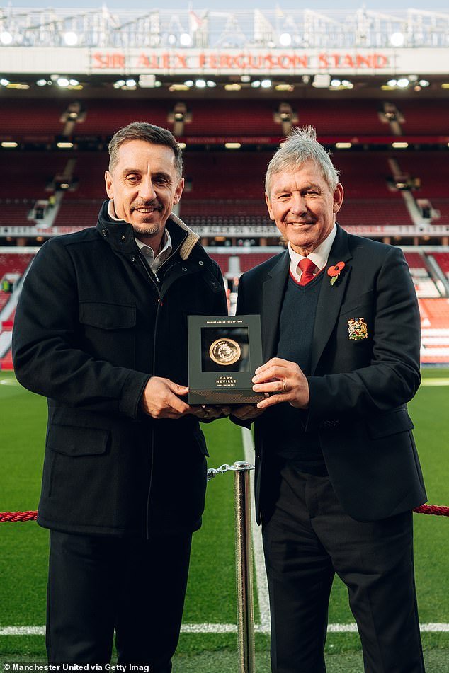 Y, hablando poco después de su incorporación a fútbol deportes del cieloNeville dijo: “Es un momento encantador y lo hizo aún más especial por el hecho de que mi héroe cuando era niño, Bryan Robson, quien era la encarnación de todo lo que quería ser cuando era niño, me lo presentó.