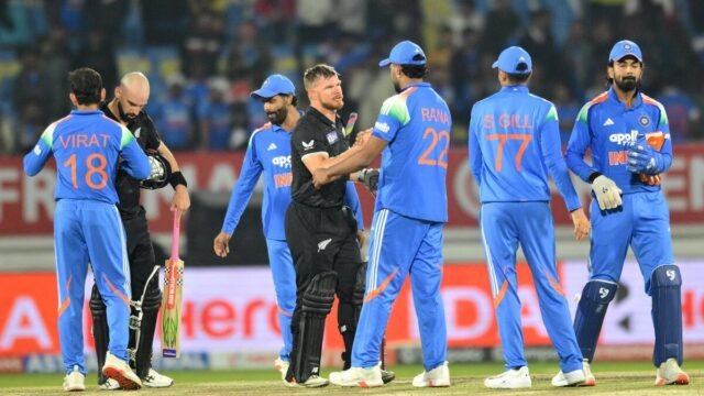 Contra el ritmo, Mitchell también se mostró seguro. Jugó tarde, colocó el balón en espacios con manos suaves y le negó a India la oportunidad de crear presión a través de puntos, un tema recurrente en la serie y un factor clave en el dominio de Nueva Zelanda en los mid overs.