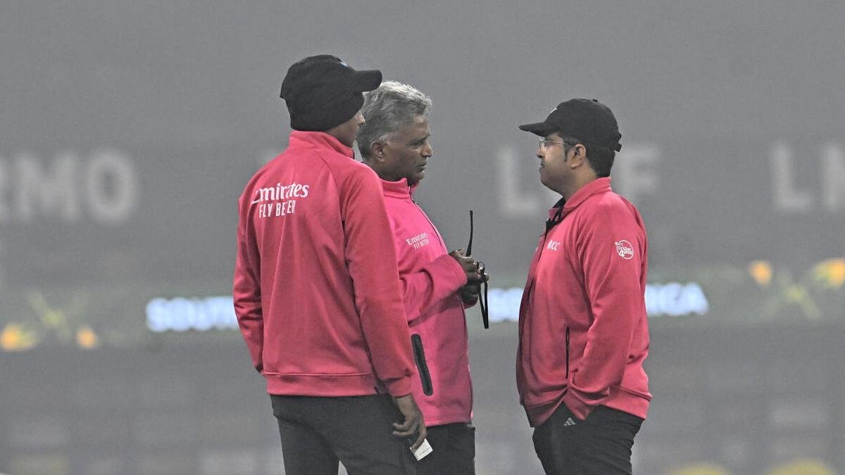 Pandit, que jugaba su duodécimo partido de T20I, sufrió dolor, lo que provocó una breve interrupción del juego, pero continuó arbitrando el partido después del descanso.