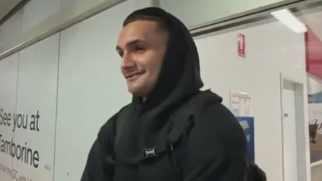 El periodista jefe de nueve, Tom Morris, publicó una visión de la llegada de Ugle-Hagan y dijo que la joven pistola estaba “todo sonriendo” después de atraer.