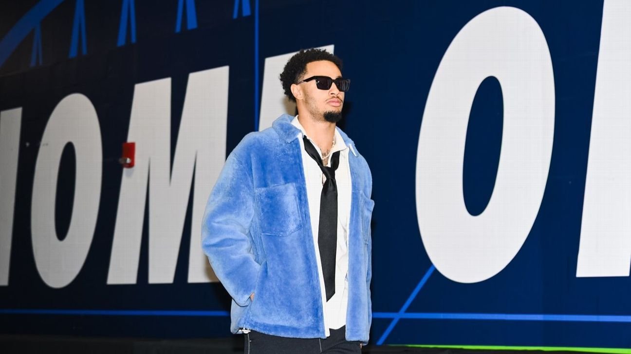 Los trajes eran un tema común antes de “Thursday Night Football”, aunque el receptor abierto estrella de los Seahawks, Jaxon Smith-Njigba, se volvió creativo al diseñar su estilo de camisa y corbata, optando por un cuello abierto, un lazo suelto y una cómoda chaqueta azul.