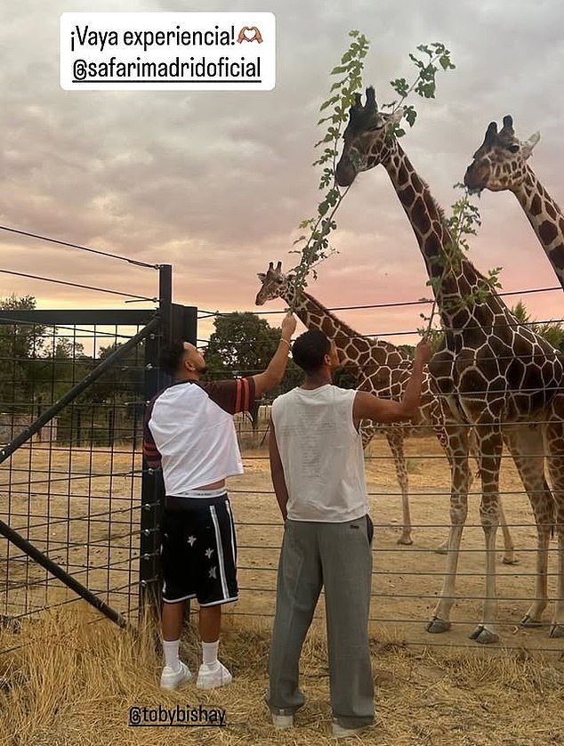 ¡Judas siempre apunta alto! Bellingham alimenta a una jirafa en un parque safari en Madrid mientras disfruta de un mini descanso tras la omisión del centrocampista inglés.