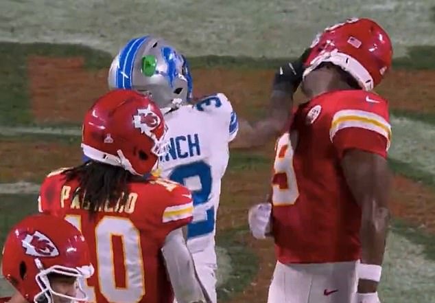 “Fue un partido largo para el safety de los Lions, Brian Branch, número 32”, dijo el narrador Louis Riddick. “Se quemó con el movimiento de baloncesto de (Travis) Kelce. Fue presentado por (Patrick) Mahomes. Xavier Worthy lo insultó y le disparó a JuJu Smith-Schuster. El punto de inflexión llevó al punto de ebullición de Branch.