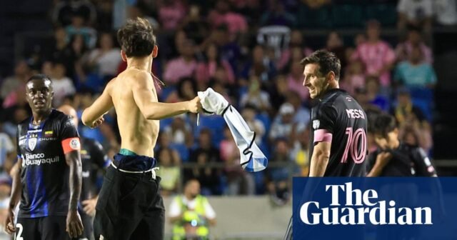 En el minuto 88, los fanáticos ingresaron al campo detrás de la portería de Miami, y un invasor del campo pasó a Rodrigo De Paul antes de converger hacia Messi. Un guardia de seguridad obligó al aficionado a correr delante del argentino, pero otros dos jóvenes aficionados (uno con la camiseta del Barcelona y el otro de Miami) hicieron lo mismo y le pidieron un selfie y un autógrafo.