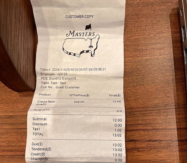 Los fanáticos del Masters quedaron atónitos después de que a un fan le costara solo $ 13,02 por dos cervezas en Augusta.