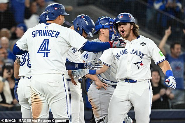 En el Juego 1 en el Rogers Centre el viernes por la noche, Toronto tomó el control en la sexta entrada cuando, con los equipos empatados 2-2, los Azulejos anotaron nueve carreras, incluido un histórico grand slam de Addison Barger.