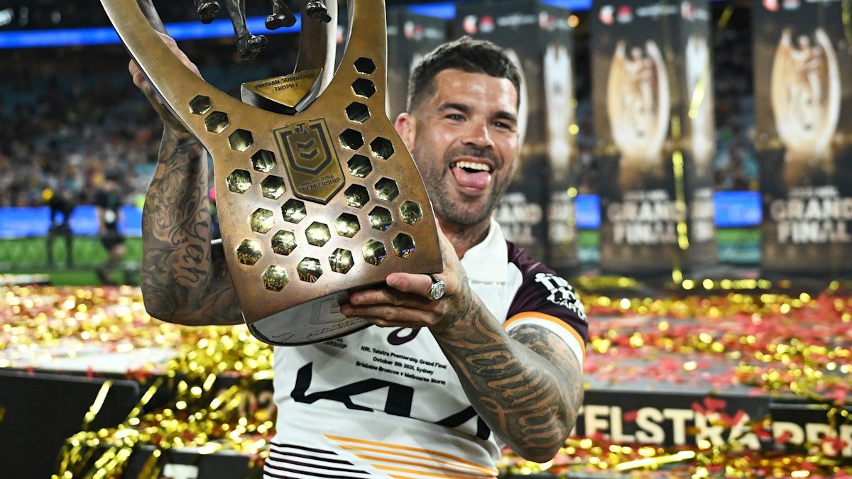 Adam Reynolds con el Trofeo Provan-Summons el domingo por la noche. Imágenes NRL