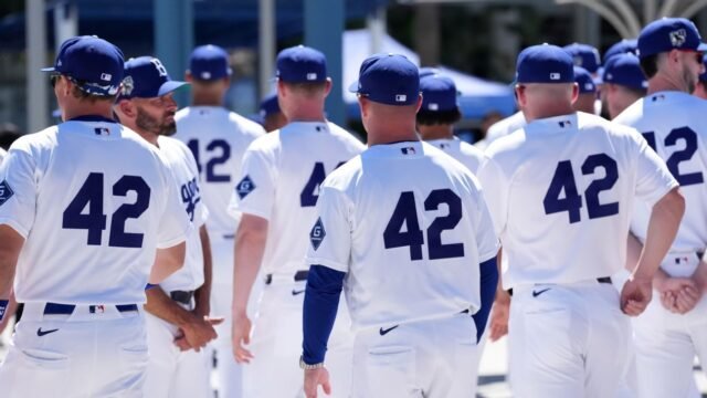 LOS ÁNGELES – La Liga Mayor de Béisbol honrada Jackie Robinson El miércoles, todos los jugadores, entrenadores y árbitros usaron su número 42 para conmemorar el cumpleaños número 79 del jugador de cuadro que rompió la barrera del color en este deporte.