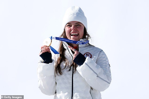 La estadounidense ganó el oro en el descenso femenino con un tiempo de 1:36.10.
