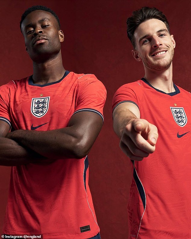 Los fanáticos detectaron un error de fabricación en las camisetas de Inglaterra modeladas por Marc Guehi y Declan Rice