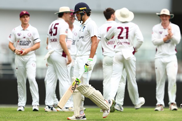 Sam Konstas tras ser despedido durante un reciente partido de Shield. Getty