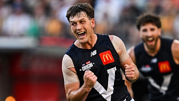 Zak Butters celebra un gol durante el AFL State of Origin. Fotos de AFL a través de Getty Images