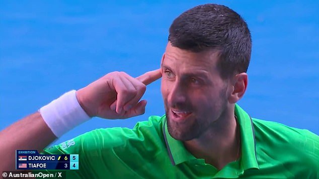 Djokovic se detuvo a medio movimiento y respondió con una risa sarcástica, provocando risas en la multitud.