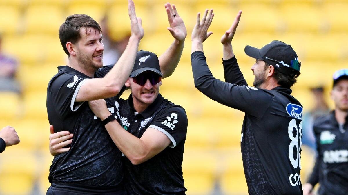 Nueva Zelanda: Tim Robinson, Devon Conway (semana), Rachin Ravindra, Mark Chapman, Daryl Mitchell, Michael Bracewell, James Neesham, Mitchell Santner (c), Zakary Foulkes, Kyle Jamieson, Jacob Duffy.
