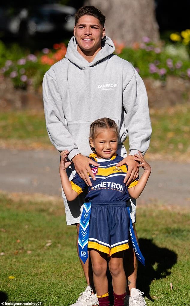 La estrella de los Brisbane Broncos, Reece Walsh, dio un paso atrás en su papel normal en el campo de la liga de rugby y vio a su hija Leila hacer su debut en el fútbol juvenil.