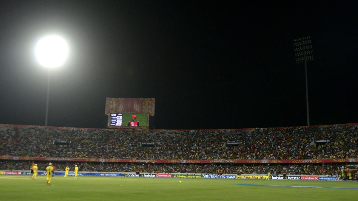 Los focos dejaron de funcionar temporalmente durante el partido entre Sunrisers Hyderabad y Rajasthan Royals en el Estadio Internacional Rajiv Gandhi en Hyderabad el lunes por la noche.