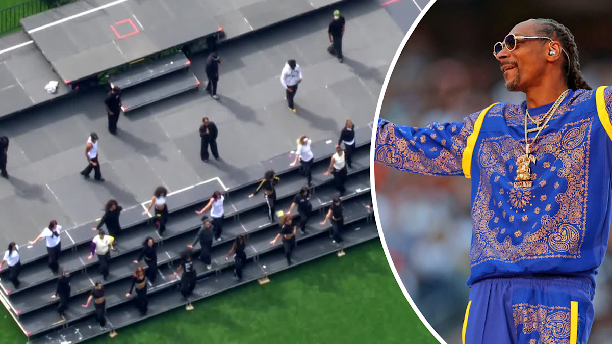 A través del estadio de la ciudad de Marvel, se construyó una réplica de escenario, con Snoop Dogg y sus bailarines de rescate iniciando ensayos, con más que seguir más adelante en la semana.
